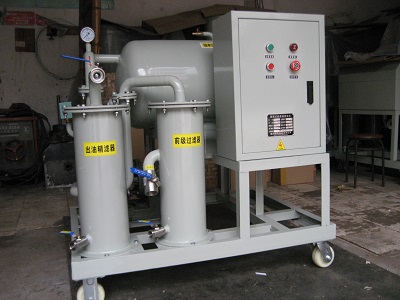 聚結(jié)分離式濾油機,以濾油機為代表,其原理是采用聚結(jié)、分離式濾芯吸除水份,采用精過濾芯去除雜質(zhì),這種濾油設(shè)備去除雜質(zhì)性能較好,去除油中的大量水分效果也不錯,缺點是耗材使用量大,一套濾芯更換下來得上萬,同時去除油中水分的效果只能達到合格的邊緣。濾油效果受油質(zhì)的溫度影響較大。