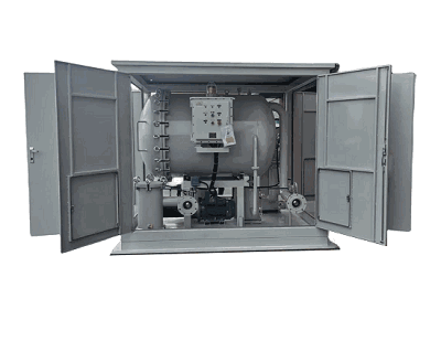 油液在系統(tǒng)中首先進入粗濾系統(tǒng),經(jīng)處理,大顆粒的雜質被去除,以保護油泵不被損壞,后油液被泵入二級過濾系統(tǒng),經(jīng)處理進入聚結室內的聚結濾芯,由于聚結濾芯材料獨特的極性分子結構的作用,油液中的游離水以及乳化水在通過濾芯后聚結成為較大的水滴,在重力作用下下沉至儲水罐內。微細水分子在慣性作用下隨同油液至分離濾芯處。分離濾芯由特殊的疏水材料制成,當油液通過時,微細水分子被擋在濾芯的外面,經(jīng)過相互聚集,因重力沉降到聚結室下部的儲水罐中排出。油液經(jīng)過脫水處理后,進入精濾系統(tǒng)以保證進入用戶油箱的油液清潔度達到設計標準。